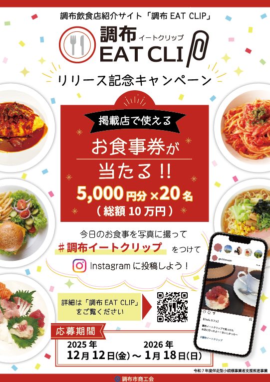 調布飲食店紹介サイト「調布EAT CLIP」リリース記念キャンペーン